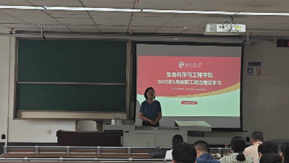 9月25日下午,生命学院在九里校区4319会议室召开全体教职工大会暨政治理论学习。会议由学院党委书记黄春蓉主持,学院全体教职工参加了会议。